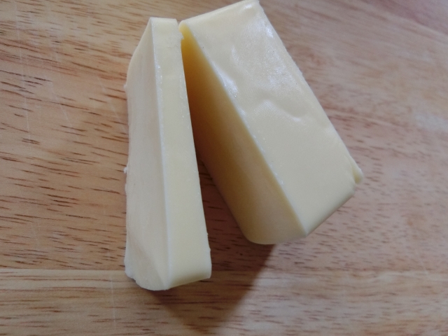 コルビージャックチーズは、サイズ的には市販のバター2つ分くらいの塊になったチーズです。